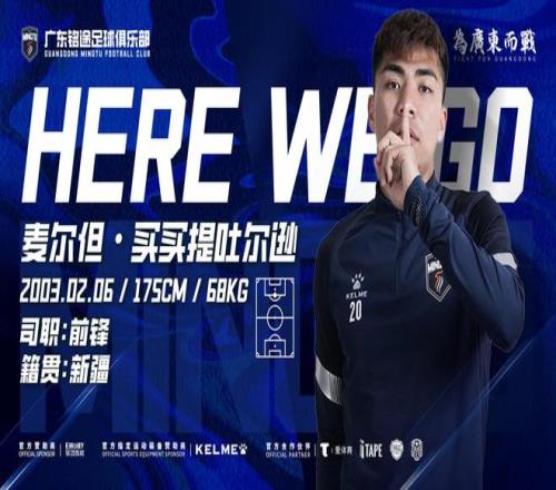 經(jīng)廣東銘途足球俱樂部研究決定,并與球員本人協(xié)商一致,麥爾但-買買提吐爾遜即日起正式加盟廣東銘途足球俱樂部一線隊。