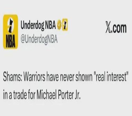 之前勇士跟籃網(wǎng)的小波特“緋聞”滿天飛,更是有人說后者已經(jīng)買好了前往金州的飛機(jī)票。然而爆料王Shams對此有不同的看法,表示勇士從未對小波特表現(xiàn)出真正的興趣,更是已有一個(gè)多月沒與籃網(wǎng)進(jìn)行實(shí)質(zhì)性對話。