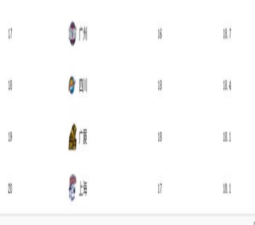 第4名-第16名分別是山西男籃(22.8次)、廣東男籃(21.9次)、江蘇男籃(21.9次)、福建隊(21.8次)、新疆(20.9次)、天津(20.7次)、浙江(20.5次)、深圳(20.4次)、北控(20.3次)、吉林(20.1次)、遼籃(19.7次)、北京(19.5次)、青島(19.2次)。