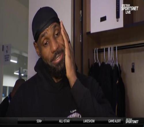 賽后,詹姆斯接受了媒體采訪。因?yàn)榇饲癊SPN發(fā)布的關(guān)于珍妮-巴斯的長(zhǎng)文,詹姆斯也被尖銳地問(wèn)道關(guān)于自己未來(lái)去向的問(wèn)題。一名記者問(wèn)道:“你想留在這里嗎?你想在這里結(jié)束這個(gè)賽季嗎?”詹姆斯笑著回答但似乎答非所問(wèn):“我很好,我很好。(I'm good, I'm good)”