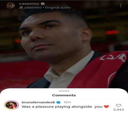 利馬&B費在社媒和卡塞米羅互動:和你共事太愉快了