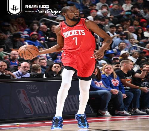 北京時(shí)間1月24日,NBA常規(guī)賽繼續(xù)進(jìn)行,休斯敦火箭隊(duì)(27勝16負(fù))重拾勝利。杜蘭特得到32分和7個(gè)籃板,他率隊(duì)5人得分上雙,火箭隊(duì)依靠第三節(jié)高潮拉開(kāi)比分后頂住對(duì)手反撲,他們?cè)诳蛨?chǎng)以111-104戰(zhàn)勝底特律活塞隊(duì)(32勝11負(fù))?;钊?duì)的4連勝被終結(jié)。