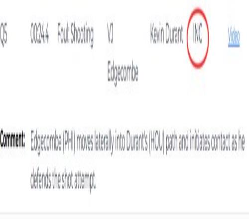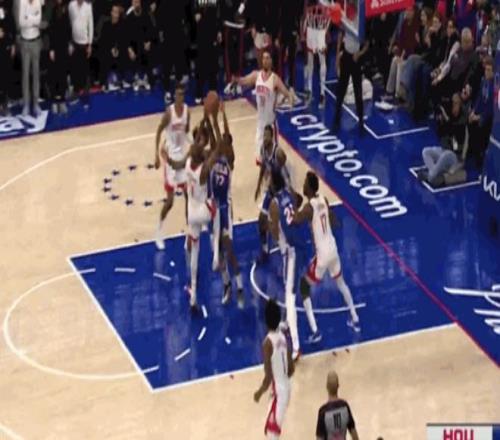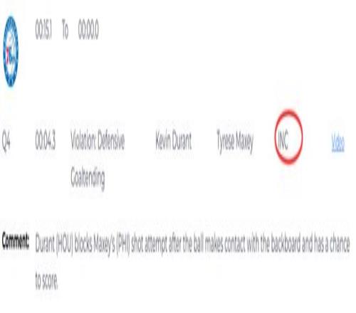 第二次漏判,發(fā)生在距離加時(shí)賽結(jié)束還有24.4秒,76人隊(duì)的埃奇庫(kù)姆在防守杜蘭特的投籃時(shí),橫向移動(dòng)切入杜蘭特的進(jìn)攻路線,并主動(dòng)發(fā)起了身體接觸。這是一次漏吹的投籃犯規(guī),杜蘭特將球打進(jìn),所以火箭本該獲得加罰一球的機(jī)會(huì)。杜蘭特也向裁判攤手表示對(duì)方犯規(guī),但裁判沒有表示。這次漏判是火箭吃虧,76人獲利。