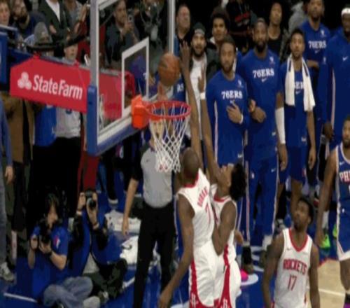 第一次漏判,也是大家第一時(shí)間就看到的干擾球違例。距離第四節(jié)結(jié)束還有4.3秒時(shí),火箭隊(duì)的杜蘭特在76人隊(duì)馬克西的出手籃球打到籃板、仍有入網(wǎng)得分機(jī)會(huì)時(shí),完成了一記封蓋。這是一次漏吹的防守干擾球違例,76人本該得到兩分,很有機(jī)會(huì)在常規(guī)時(shí)段拿下比賽。這次漏判是76人吃虧,火箭獲利。