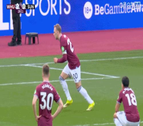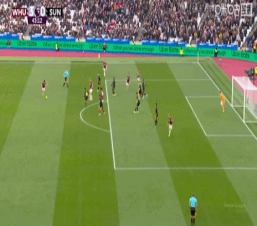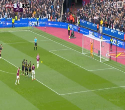 第28分鐘,斯卡萊斯造點,鮑恩主罰點球命中,西漢姆聯(lián)2-0桑德蘭