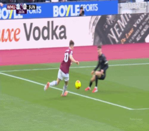 第14分鐘,鮑恩右路底線傳中,薩默維爾頭球破門,西漢姆聯(lián)1-0桑德蘭