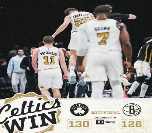 北京時間1月24日,NBA常規(guī)賽凱爾特人客場對陣籃網(wǎng),雙方前三節(jié)持續(xù)緊咬比分,凱爾特人第四節(jié)中段擴大10分優(yōu)勢,籃網(wǎng)強勢扳平比分。首個加時賽,岡薩雷斯命中關(guān)鍵扳平三分,凱爾特人第二個加時賽表現(xiàn)出色,最終凱爾特人130-126雙加時戰(zhàn)勝籃網(wǎng)收獲2連勝鞏固東部第二,籃網(wǎng)遭遇4連敗。
