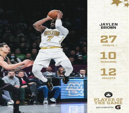 這場凱爾特人贏得是真不容易,雙加時大戰(zhàn)才艱難戰(zhàn)勝對手,當家球星布朗全場交出27分10籃板12助攻,這也是布朗生涯的第五次三雙。