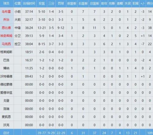 數(shù)據(jù)上一目了然,恩比德38分11板5助打爆唐斯為首的尼克斯內(nèi)線群,無奈空砍。