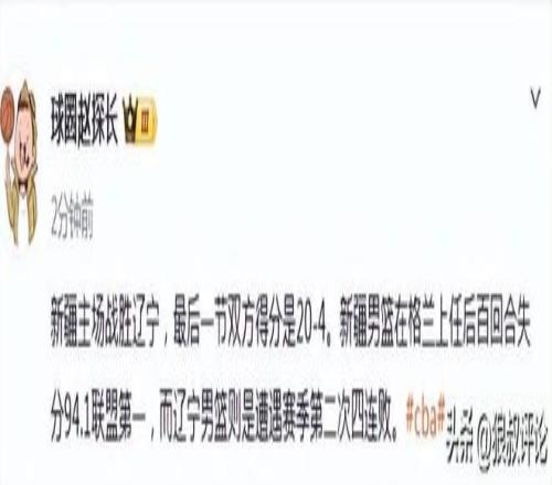 新疆主場戰(zhàn)勝遼寧,最后一節(jié)雙方得分是20-4。新疆男籃在格蘭上任后百回合失分94.1聯(lián)盟第一,而遼寧男籃則是遭遇賽季第二次四連敗。