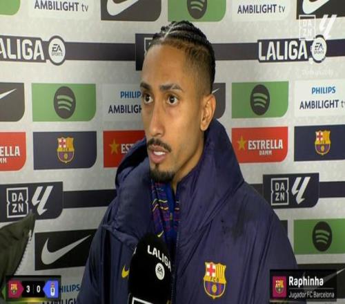 幫助巴薩在聯(lián)賽主場3-0完勝奧維耶多后,巴西前鋒拉菲尼亞接受了DAZN的采訪。