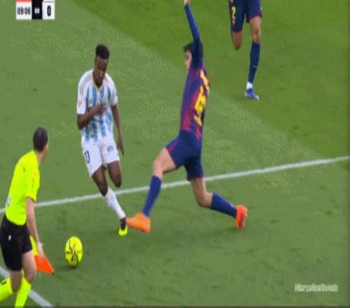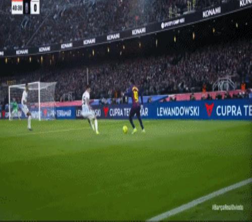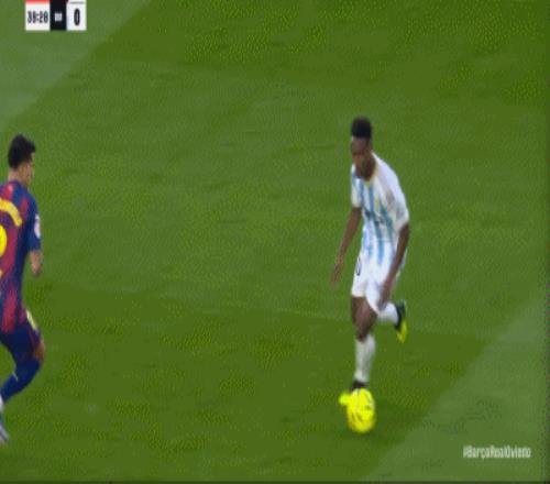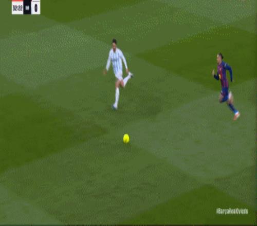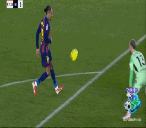 第57分鐘,皇家奧維耶多后場(chǎng)失誤,拉菲尼亞單刀破門,巴薩2-0