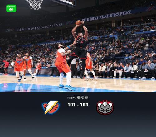 第四節(jié)雷霆肯里奇-威廉姆斯拿下7分,猛龍奎克利拿下11分,最終雷霆101-103不敵猛龍