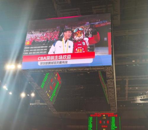 這場比賽,深圳新鵬城球員戴偉?,F(xiàn)場觀戰(zhàn),還與深圳男籃的吉祥物進(jìn)行了合影。