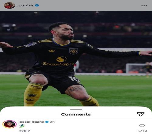 賽后庫尼亞在社媒曬出了自己的慶祝照片,林加德也在社媒積極互動(dòng),他回復(fù)了?♂?的表情包。