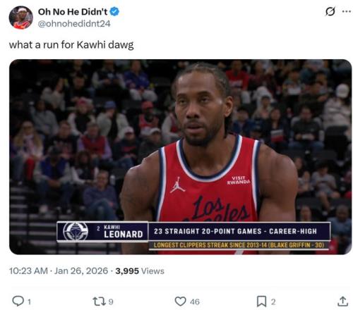 也正是在小卡的帶領(lǐng)下,快船隊(duì)才在過去18場(chǎng)比賽拿下15勝3負(fù)表現(xiàn),也讓一名此前口嗨的球迷淪為笑柄。