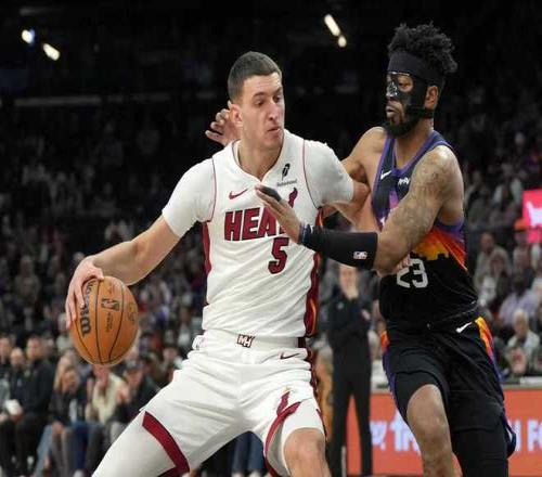 太陽上一場客場103-110輸給老鷹,熱火上一場客場147-116大勝爵士,本賽季首次交鋒太陽客場121-127輸給熱火。本場太陽缺少布克與杰倫-格林,熱火缺少米切爾、羅齊爾、希羅與韋爾。首節(jié)開局熱火3-5落后,雙方緊咬比分纏斗至熱火13-15落后,熱火一波9-0攻勢反超7分。伊戈達(dá)羅內(nèi)線得分,熱火一波7-0攻勢擴大12分優(yōu)勢,熱火隨后持續(xù)保持兩位數(shù)領(lǐng)先優(yōu)勢,首節(jié)結(jié)束熱火32-21領(lǐng)先太陽。首節(jié)熱火24中10,其中三分僅8中1,鮑威爾8分與阿德巴約9分;太陽21中8,其中三分10中2,狄龍7分。