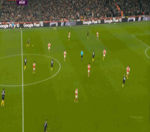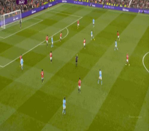 因為中衛(wèi)不行,所以需要在身側(cè)布置大量的人手,從而將中衛(wèi)和核心防守區(qū)域徹底包住,以此來最大程度地保證防守端不丟球,這就是曼聯(lián)能夠在對陣曼城時打出零封,對陣阿森納時,只因為烏龍球和定位球失分的原因。