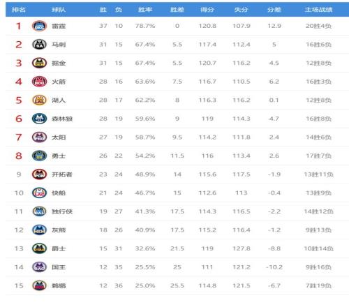 今日比賽后太陽(yáng)、森林狼排名互換,灰熊、獨(dú)行俠排名互換,其他西部球隊(duì)排名不變。