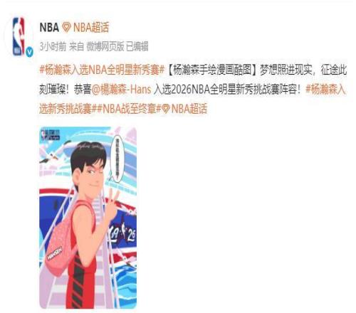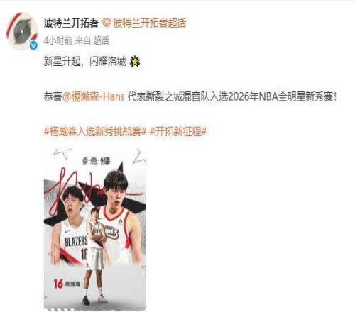 NBA官方和波特蘭開拓者也發(fā)文祝賀楊瀚森入選NBA全明星新秀賽。