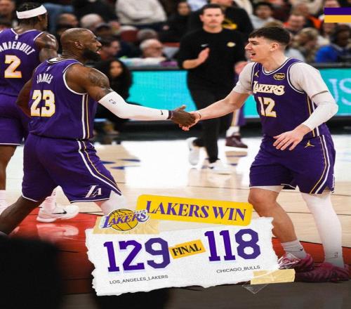 道蘇姆拋投得分,東契奇2罰1中。詹姆斯、吉迪各有2罰全中,東契奇遠(yuǎn)投不進(jìn),吉迪上籃得手,東契奇助攻拉拉維亞在禁區(qū)得分。武切維奇2罰全中,斯馬特2罰不中,奧科羅遠(yuǎn)投打鐵,比賽時(shí)間走完。最終,湖人以129比118力擒公牛,得以斬獲2連勝。