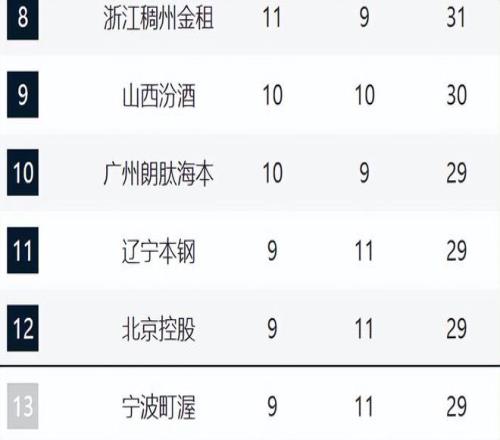 11-13分別是遼寧、北控和寧波。遼寧這輪大勝四川,止住頹勢。北控最近的趨勢越來越好,內(nèi)線暴走的情況下,全隊都被盤活,現(xiàn)在已經(jīng)兩連勝了。寧波最近遭遇兩連敗,這段時間攻守一塌糊涂。