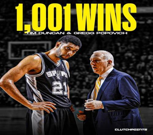 其中,鄧肯與波波維奇搭檔拿下1001場勝利,排名歷史第一,歷史前十中僅有兩隊搭檔是現(xiàn)役球員與現(xiàn)役主帥。