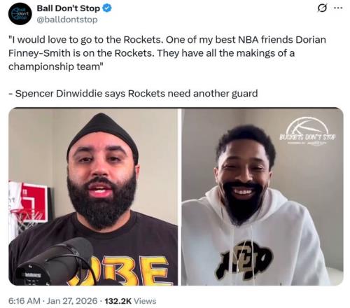 火箭隊(duì)一項(xiàng)數(shù)據(jù)聯(lián)盟第一!丁威迪果斷毛遂自薦,認(rèn)為火箭隊(duì)具備爭冠實(shí)力,同時(shí)缺少控球后衛(wèi),自己非常想要加入。